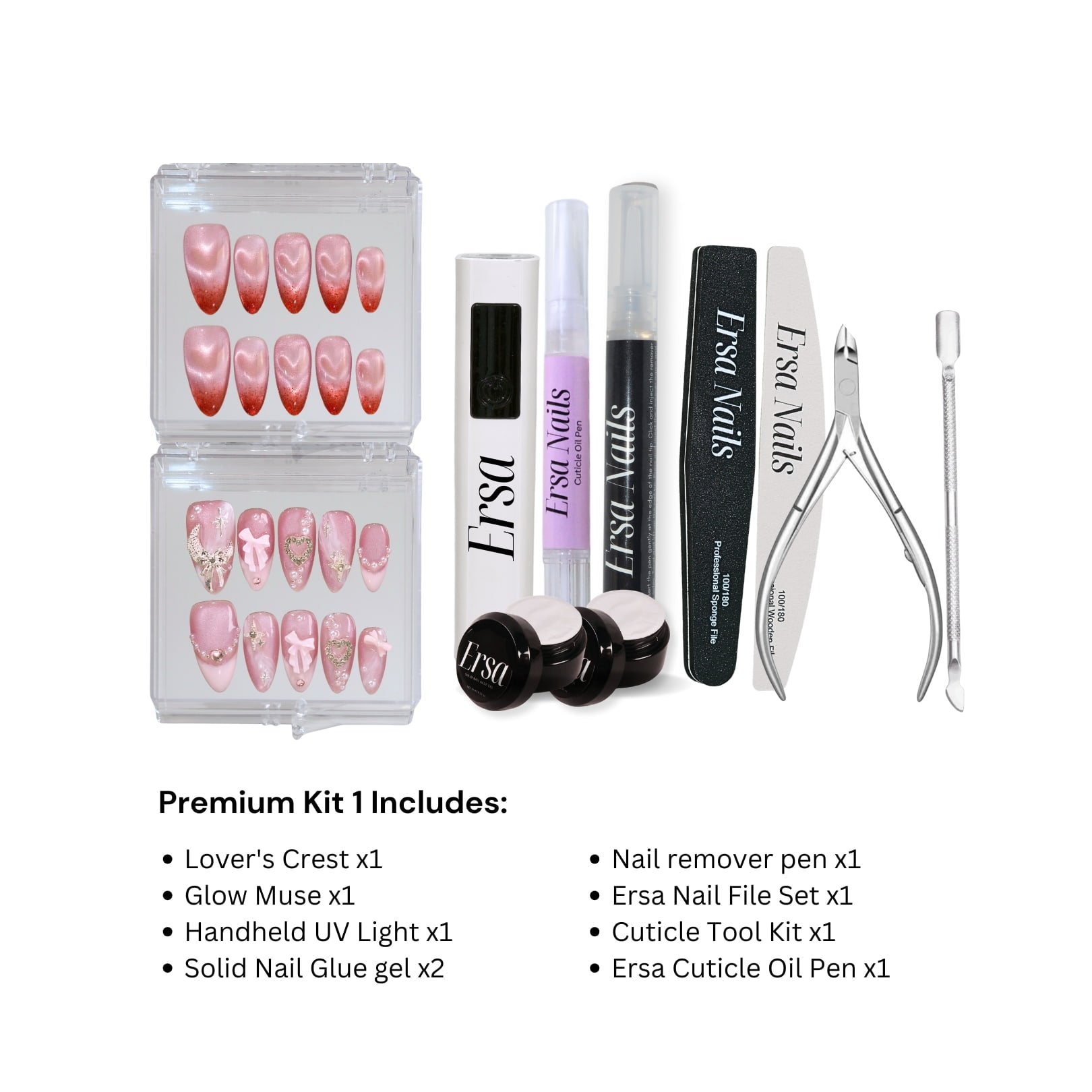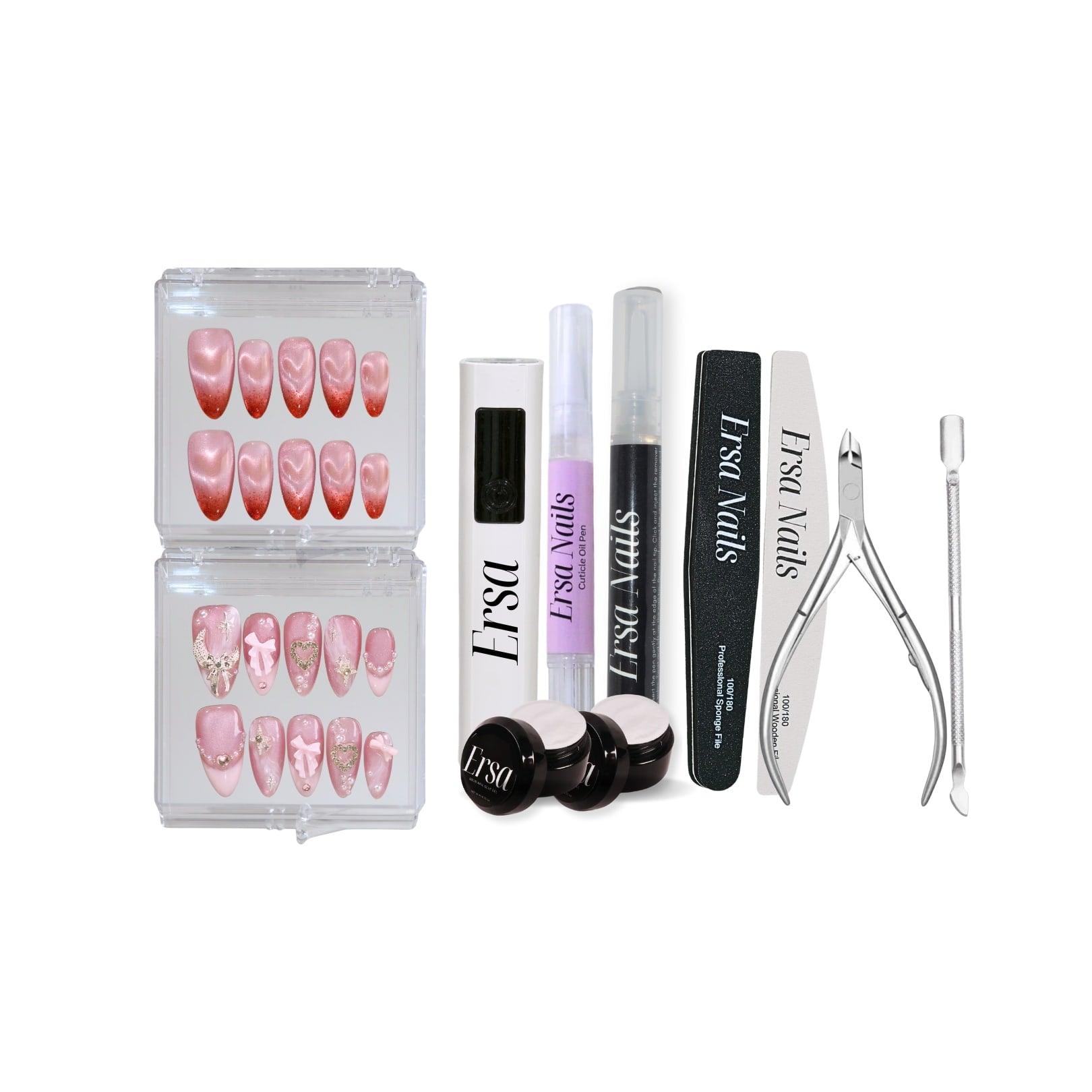 Get ready to sparkle this Valentine’s Day with the Ersa Nails bundle! Featuring our dazzling Holiday Glow press-on nails, our top-rated tool kit, and a revitalizing cuticle oil pen, this set has everything you need for a flawless festive manicure. Treat yourself or a loved one to the perfect Valentine’s Day manicure that shines with love and sparkle! 💖💅
