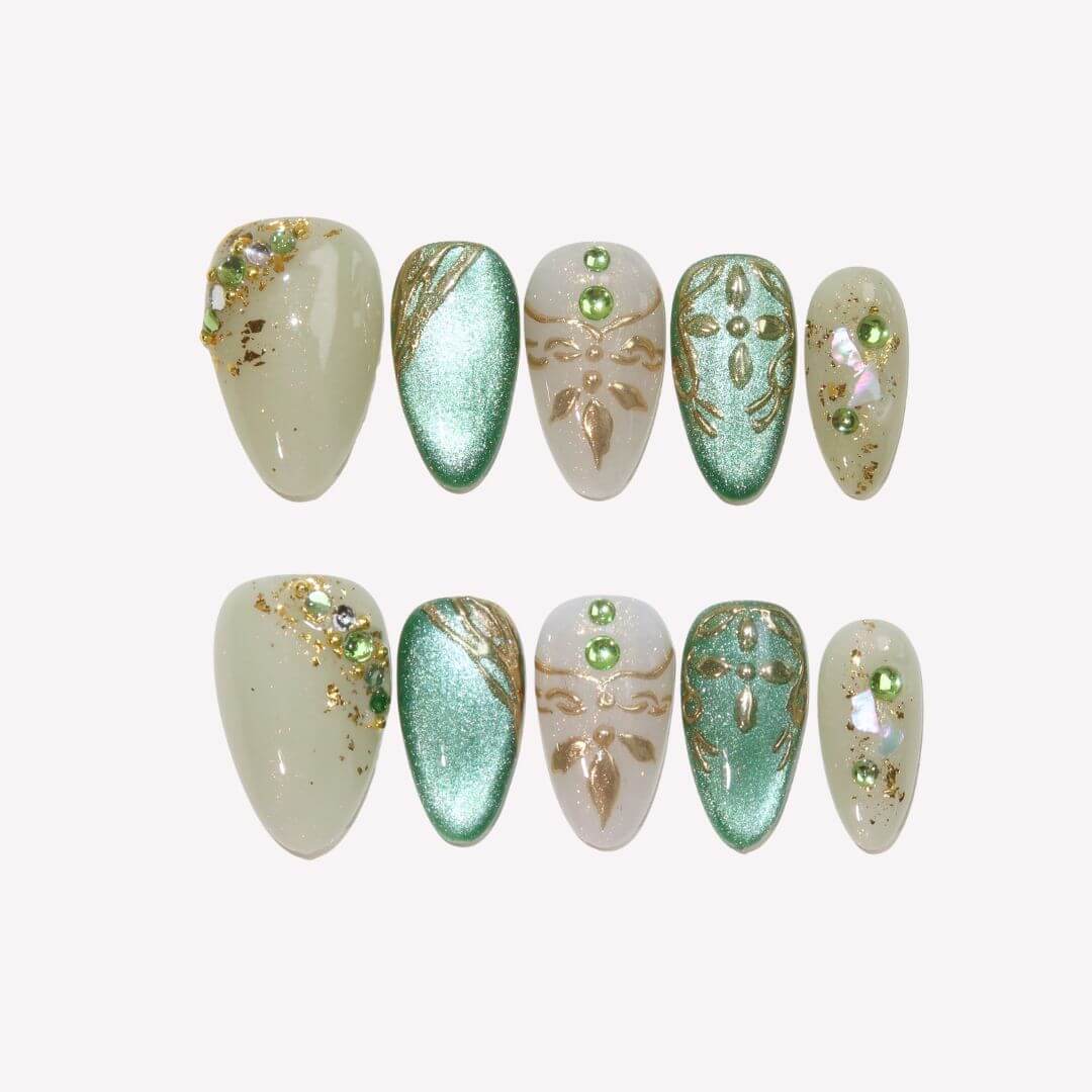 Certainly! Our handcrafted nails aren't just a one-time affair. Infused with our brand's dedication to quality and originality, Ersa press-on nails are designed for the modern individual who seeks bothstyleandsustainability. With mindful application and gentle removal, you can dance with these jewelsmultiple times, making every ensemble an encore of elegance. Experience beauty, reimagined and reusable, with Ersa. ♻️