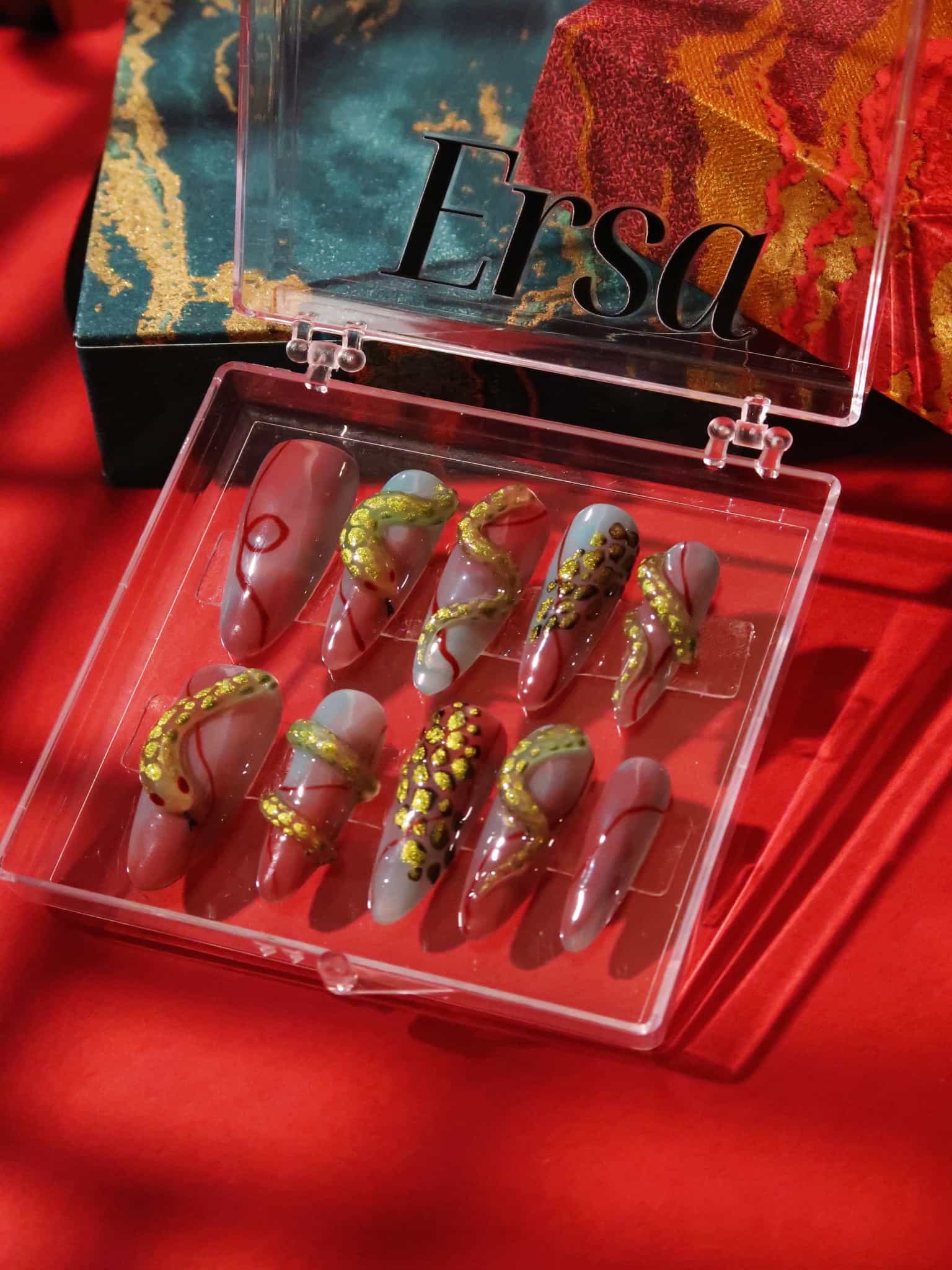 Certainly! Our handcrafted nails aren't just a one-time affair. Infused with our brand's dedication to quality and originality, Ersa press-on nails are designed for the modern individual who seeks bothstyleandsustainability. With mindful application and gentle removal, you can dance with these jewelsmultiple times, making every ensemble an encore of elegance. Experience beauty, reimagined and reusable, with Ersa. ♻️